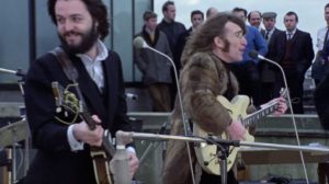 • And about that live show. I’ve written it before, but clearly the film’s arc should be (and have been) the sort of near-comedy of the greatest group in the world wondering what to do next and how — and that includes debating their own future — throwing out every idea they can think of, only to have someone argue against it. Finally, after ups and downs (George quitting), the villian (Twickenham Film Studios) is vanquished, a bit player from their past (Billy Preston) emerges out of nowhere to help return order, and everyone realizes the simplest solution (rooftop show) is what they were looking for all along. The farther one travels, the less one knows, so find the answer at home.