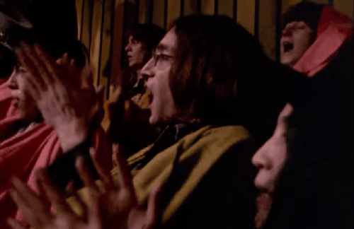 All I’d noticed vaguely was at the beginning of ‘Yer Blues’, someone was getting into a black bag at the edge of the stage, but I didn’t really take much notice of that because I was trying to figure out the best way to shoot the song. Then Yoko comes near the mike and you see John and Yoko looking at each other and John going ‘go ahead, go ahead’. Then Yoko starts to sing. I’d never heard her sing before and of course it’s very riveting and it didn’t stop. … She had been a quite well-regarded abstract artist in New York in the ‘50s, so she had a reputation in the avant garde art world. She wasn’t just a girl who turned up, she came with a reputation, although not many people in England knew who she’d been in New York.