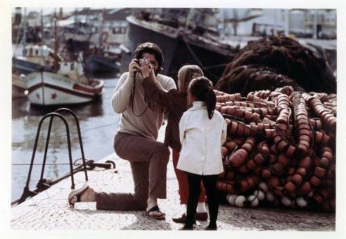 Paul, who hates socks, tries to take a photograph despite Heather Eastman’s objections, as Caitlin Davies looks on. Portugal, December 1968.