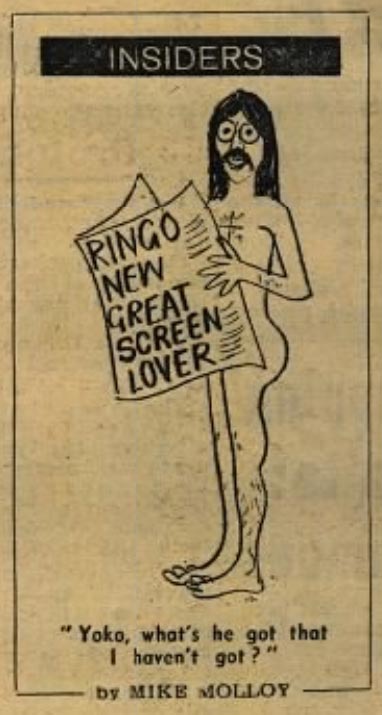 Meanwhile, the Daily Mirror poked fun at John as well as its own fawning coverage of Ringo Starr from the day before in a cartoon that ran on page 11.