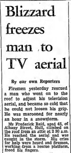 Under the front-page headline “Freeze-up hits the weekend sport,” the December 27, 1968, Evening Standard reported on the cold front leading to cancellations of sporting events, not just on this Friday, but into the upcoming weekend. The nation’s workers enjoyed the day indoors, taking in a three-day weekend “as bitter winds blew in from the north.”