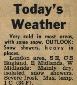 Today’s Weather: Very cold in most areas. (Daily Mirror, December 27, 1968)