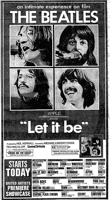 Just a few pages away from the movie listings for Let It Be, reviews and stories touted the Beatles’ recent split, and record store ads promoted Paul’s new solo LP.