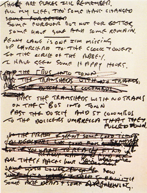 Penny Lane mattered enough to John as a location to originally appear in the the draft lyrics to “In My Life,” along with several other locations.