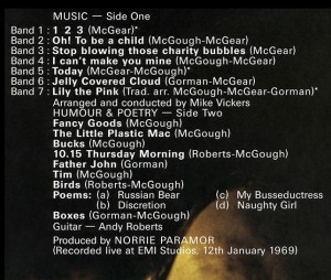 Some books place Paul at EMI Studios that night, but it’s hard to confirm just how many McCartneys were at the Abbey Road studios. There’s no question The Scaffold, featuring Paul’s brother, Mike McGear, recorded portions of their L. The P. album there that evening. There’s also no question Paul provided the guitar for two of that album’s tracks — and he recorded those in subsequent months. Side 2 of the LP, all humor and poetry, was recorded live before an audience of London University students that Sunday, and it’s feasible Paul was also in the crowd.